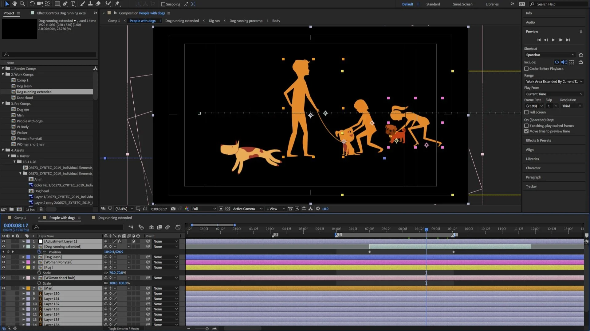 The 2D and 3D teams worked closely together to ensure that that all the animation synced up perfectly. The labels were animated in after effects and rendered out as a large animated texture. This texture was applied to a 3D bottle in Maya. The animators ensured that the 3D camera and 2D bottle worked in harmony. Addition 2D elements were then tracked to the 3D render and composited in after effects. This allowed some elements to animate off the bottle and into the environment.